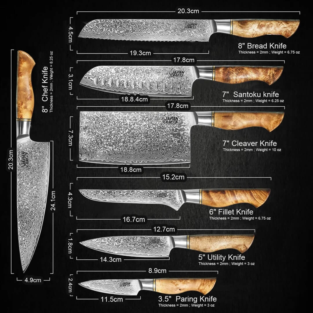 Our exclusive knife set offers exceptional sharpness and handcrafted quality. The smart choice for your kitchen — no need for constant replacements!