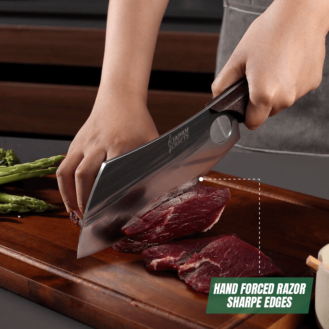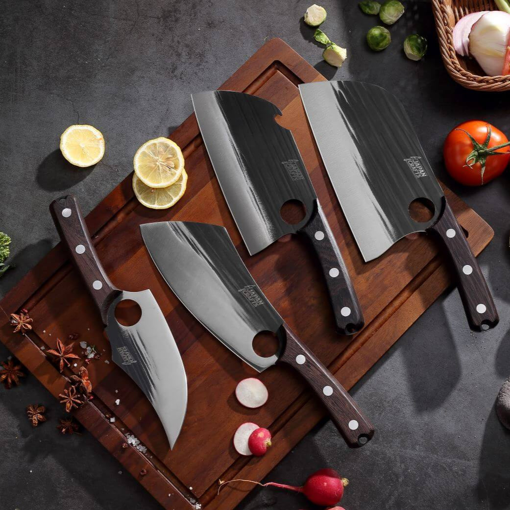 Our exclusive knife set offers exceptional sharpness and handcrafted quality. The smart choice for your kitchen — no need for constant replacements!
